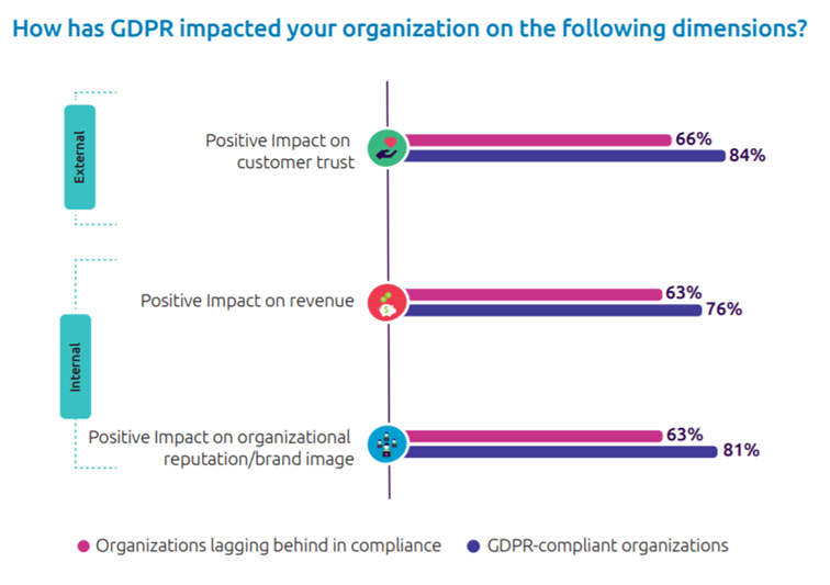 De undersökningar som har gjorts tyder även på att de som anpassat sina system har sett andra fördelar. Det gör att man ibland kan se arbetet med GDPR främst som en investering och inte en kostnad.