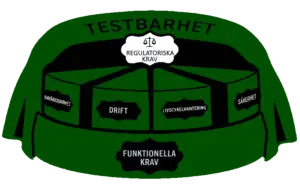 Förståelse för helheten Kvalitetstårtan är en visuell modell med sex lager som tillsammans täcker det som annars faller mellan stolarna: användbarhet, livscykelhantering, drift, säkerhet, regulatoriska krav och testbarhet. Deltagarna lär sig vad varje område innebär och hur de påverkar varandra.